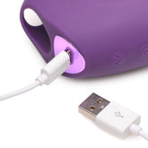 This Finger-Pulse Vibrator is your new best friend! It gets deeper than your fingers can go, vibrates, and has a textured clitoral pad to stimulate your externally, as well! With room enough for 1 to 2 fingers, you can slip your fingers inside and finger yourself or your partner with a long, curved shaft that vibrates! Enjoy trying out all 3 speeds and 7 patterns of vibration and combine that with 10 pulsing modes! Feel the "come hither" motion that your fingers can offer while adding a deep buzz, as well! To add to the pleasure even more, the soft, textured, clitoral pad presses against the glans of the clitoris while you penetrate yourself or your partner, stimulating and rubbing against that sensitive bundle of nerves! Made of silky smooth, plush, premium silicone, this toy is phthalate-free and body-safe to use with water-based lubricants! Rated as IPX6 waterproof, you can also take it in the shower! Grab the lube and apply plenty to the shaft and to yourself. Turn the toy on and begin to massage the general area to warm up and then begin to insert it. As you move your fingers, the toy moves inside you (or your partner). As the toy gets deeper, start thrusting your hips and grinding against it to feel the soft, clitoral pad so it can massage your sweet spot! Use this on yourself or your partner to enhance your pleasure. You'll be moaning in no time! Use with water-based lubricant. Wash with warm water and toy cleaner after each use. Pat dry and store in a cool, dry location, away from direct sunlight and separated from other toys. Recharge using the USB cable provided by attaching the magnetic end to the toy. Measurements: Overall length: 5.3 inches, Insertable length: 3.75 inches, Widest insertable diameter: 1.3 inches Materials: Silicone, ABS plastic Color: Purple Note: Use only with water based lubricants. Charge time is approximately 1 hour. Waterproof rating of IPX6.
