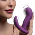 Get a rocking orgasm with this Come Hither vibrator! The long shaft has a round bulb at the end that directly targets the G-spot. The Come Hither function massages the G-spot directly with 3 speeds to choose from. Enjoy vibration through the shaft and the textured clitoral pad as you rock for dual stimulation! Choose from 3 speeds and 7 patterns of vibration. You can switch it up and mix vibration and Come Hither speeds with the remote control included so you do not have to take the toy out as you rock and writhe against it! Made of premium, phthalate-free silicone, only use water-based lubricants are used to ensure a long shelf-life. Grab your favorite water based lube and cover the toy and your labia and clitoris. Turn the toy on and pair it with the remote control. Slowly begin to work the toy inside. Once fully inserted, turn on the Come Hither function and enjoy rocking against the G-spot targeting massager! Play with the different vibration settings and feel your senses come alive to dual stimulation from the G-spot massager and the vibrating, textured, clitoral pad! Rock and writhe against the toy using the remote control to switch settings as you desire until you reach your final release! After use, wash the toy with warm water and soap and then spray with a toy cleaner. Wipe dry and store in a cool, dark place. Measurements: Overall length: 5.1 inches, Insertable length: 4.3 inches, Widest insertable diameter: 1.4 inches Materials: Silicone, ABS plastic Color: Purple Note: Remote distance up to 26ft, requires 1xCR2032 battery (included). Use only with water based lubricants.