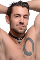 Lock this Heart Choker to your lovers neck as a symbol of ownership! This slim, elegant neckpiece features a heartshaped lock to physically and mentally bind your lover to your authority - perfect for power exchange play, light bdsm, and chastity play.