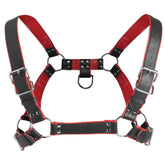 Harness your excitement in more ways than one! With this sexy, black and red, PU leather harness you can show off your body and tether the straps to your rod. Each strap is fully adjustable; use the nickel-free, metal buckles to cinch it tight. At the base of the harness is a 2 inch diameter (50mm) cock ring that serves the dual purpose of enhancing your erections and holding the harness in place. You can choose to expose your goods or cover them with a spacious, matching jock strap. The jock strap covers the front and still exposes your booty with two straps that go around the thighs and a belt that tightens around the waist. Spot clean with toy cleaner as needed and wipe with a soft cloth.