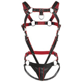 Harness your excitement in more ways than one! With this sexy, black and red, PU leather harness you can show off your body and tether the straps to your rod. Each strap is fully adjustable; use the nickel-free, metal buckles to cinch it tight. At the base of the harness is a 2 inch diameter (50mm) cock ring that serves the dual purpose of enhancing your erections and holding the harness in place. You can choose to expose your goods or cover them with a spacious, matching jock strap. The jock strap covers the front and still exposes your booty with two straps that go around the thighs and a belt that tightens around the waist. Spot clean with toy cleaner as needed and wipe with a soft cloth. Show off your body and enjoy the look and feel of this strong, faux leather harness! Put the harness over your shoulders and tighten or loosen it so that the cockring can comfortably slip over your shaft and testicles. To put the cockring on, slip one testicle in at a time, and then pull your flaccid shaft through the ring. After that is secured, you can tighten the straps to gently pull up or lift your shaft. If anyone tugs against your harness, they will also be gently tugging at your rod as well! Cover up your goods until the big reveal later by wearing the roomy jock strap around your waist and hips. Wear it at your favorite kink club, adult party, or leather festival! Measurements: Waist: 32 inches to 43 inches circumference. Chest: 41 inches to 45 inches circumference. Cock ring: 2 inches (50mm) inner diameter. Materials: PU leather, metal Color: Black, Red