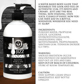Love the texture and look of cum? Play with our Jizz Body Glide and enjoy using it in sensual play! The creamy white texture is made from a water-based mix and it is unscented so you can enjoy the look and feel without any lingering scents! It is super slippery, so you can slip and slide over each other as you massage each other's bodies. As a bonus, even if it spills it is non-staining! It stays slick, but because of the water-base it cleans up easily with soap and water. Ingredients included are generally body safe but do include glycerin, so it is not recommended for internal use. Keep away from children and keep at room temperature in an upright position.