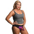 This great alternative to a strapon harness is comfy and compatible with all dildos! Play with a different dynamic with this Crotchless Panty Harness! This harness has a universal O-ring that can fit any strapon dildo. The wide, elastic waistband is comfortable and hugs you above the hips. Designed so that you can both give and receive pleasure during play, it is crotchless and has an open back that exposes your booty, too! This comfortable, easy to play in, supportive panty is made of nylon and is machine washable on a cold cycle. It can also be hand washed in mild soap and cool water. Slip these sexy panties on and then grab your chosen pegging dildo. Slip the dildo under the waistband and push it through the hole in the front. The O-ring will hold it in place and keep it from slipping it. Depending on the weight, it may need some manual support or it will pull the panties down. Grab some lube and your aroused partner and enjoy! Measurements: 19.25 inches waistband diameter, fits 39 to 44 inch waist circumference. O-ring inner diameter: 1.75 inches. Materials: Spandex. Color: Purple/Black.