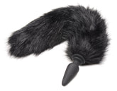 Indulge in your primal fantasies with this large anal plug and black fox tail kit! The slim anal plug is made from premium grade silicone so you can play worry free knowing your toy is phthalate-free and body safe! The tapered tip makes it easy to insert and the plus yet firm body of the plug is comfortable and pleasurable to wear. Add a primal twist to your roleplay and let your wild side come out to play! Tailz Snap-Ons are crafted for true animal roleplay enthusiasts! These interchangeable tails feature a nifty silicone cap at their base, allowing you to easily detach and switch with other Tailz Snap-on attachments. Designed for use with Tailz Snap-On Butt Plugs - collect a variety of styles and colors that suit your fantasy! Each Tailz Snap-on is made with super soft, vegan friendly faux fur - perfect for all kinds of kinky, animal centric fun! This Black Fox Tail is thick, long, and furry! Pair this 16 inch black beauty with your favorite set of dark lingerie, leathers, or other dark accessories and unleash your inner fox. Complete your foxy appearance and indulge in kinky primal play with your partner. Spot clean this fox tail after use with a damp cloth and blow dry as needed. Clean the silicone plug with warm water, soap and then spray clean with a toy cleaner before storing in a cool, dry place. Measurements: Large Fox Anal Plug: overall length: 4.6 inches, insertable length: 3.8 inches, widest insertable diameter: 1.6 inches Tail: Tail length 16.5 inches, width 3.5 inches Materials: Plug: Silicone, Tail: Polyester, ABS Plastic Color: Plug: Black, Tail: Black Note: Additional tail colors and styles and different anal plug sizes can be purchased separately.