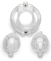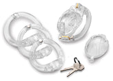 This breathable, lightweight plastic chastity cage is perfect for chastity enthusiasts that want something more comfortable than heavy metal. The plastic is more forgiving than the heavy drag that metal and is perfect for long term wear. The breathable design makes it easy to clean and allows the crevices to fully dry between showers so the cage is hygienic and safe to use. Enjoy the exciting feeling of being locked up! The smooth, hard plastic keeps your member contained and the secure locking system includes two keys and locks the cage in place without the need for a padlock to get in your way during wear. Both the wearer and the keyholder can enjoy the semi-transparent black cage and the captive member within it. Adjust for the perfect fit using one of the 4 graduated rings. To wash the cage while wearing, use warm water and antibacterial soap, then let air dry. To urinate, make sure to wear the cum-thru tip instead of the solid cap. Only use the solid cap for short-term wear. Use with water based or silicone lubricant only. Use a toy cleaner in between uses when cleaning for best results. Measurements: Cage is approx. 3.5 inches long x 1.6 inches wide x 1.4 inches high Ring inner diameters: 1.7 inches, 1.9 inches, 2 inches, 2.25 inches Materials: ABS plastic, metal Color: Clear