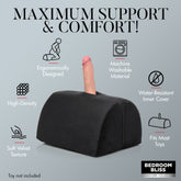 Humping, grinding or riding your favorite dildo, vibrator or toy has never been easier! With this ergonomic saddle pillow made of high-density foam, you can insert your favorite toy into the pocket and ride it hands-free! The soft outer cover and the water-resistant inner cover protect the foam during even the wettest rides. Both covers are machine washable so caring for your saddle is easy! Enjoy hands-free stimulation as you straddle the ultra soft pillow, effortlessly lifted up so you can enjoy your partner's passionate affections or angle yourself to ride the toy of your choosing! The toy pocket at the top fits most toys but is especially designed for wands, vibrators and dildos. Spice up your sex life and use a vibrator while getting penetrated by your partner! Place this high-density foam onto a bed, couch, bench or the floor. Harder surfaces give even more support for the pillow, but softer surfaces give padding to your knees. Grab your favorite toy and slip the base into the pocket. Then turn it on and use some lube as you begin to writhe and grind. Bring your partner in on the action, too! As they slip their hands around your body, they can enter you from behind, your body perfectly poised to receive them as you simultaneously buzz your most sensitive spots! Play around and have fun! Flip over and use the pillow to help them plow you deeper and hit the right angle! Lift up your hips, support your body and explore new positions all with this one formidable, foam pillow! Measurements : Length: 15.6 inches.Width: 12.3 inches.Height: 9.1 inches. Toy pocket opening is 4.5 inches across and 4.5 inches in depth. Materials : Foam, polyester, nylon Color : Black