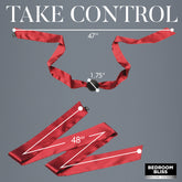 Everything you need to surprise your partner with the ultimate sensual experience! This bedroom Bliss Bondage massage Set includes 1 Satin Blindfold, 1 Satin Paddle, 2 Satin Restraints, 1 Silicone Ball Gag, 1 Silicone Butt Plug, 1 Vibrating Silicone C-Ring, 1 Vibrating Silicone Bullet, 1 Feather Tickler, 1 Massage Candle, 1 1.7oz bottle of massage oil. Enjoy 3 speeds and 7 patterns of vibration from the vibrating C-ring and the bullet vibrator! They are both covered in silky smooth, premium silicone. The bullet vibe is rated IPX7 waterproof and can be submerged underwater for up to 30 minutes and the C-ring is rated IPX6 waterproof and can be taken in the shower, but not submerged underwater. The ballgag is also premium silicone and all silicone items are phthalate-free and body-safe to use with water-based or oil-based lubricants. Enjoy the satin against your skin as you use the blindfold, restraints and gag. Arouse your partner with sensual play from the feather tickler, the wax candle or the massage oil! Satin can be stained by oil, so try not to get oil on the satin. To clean it or remove an oil stain, use baking soda and sprinkle it over the satin, then place a cloth or towel over the powder and put a book to weigh it down. Leave it overnight. You can also use lemon juice or white vinegar mixed with water and dab the stain. To wash the silicone toys simply use mild soap and warm water, then rinse it off and spray it with a toy cleaner before patting it dry. Recharge the vibrators using the USB cable provided. Secure your partner's wrists and ankles with the silky soft satin restraints. Add the satin blindfold to heighten their other senses and fit the premium silicone ball gag into their mouth while you tease them with the ultra-soft feather tickler. Heat things up with a sensual massage! Drizzle the warm vanilla-scented massage candle or massage oil over your lover and caress it into their supple skin. Indulge in anal play with the premium silicone anal plug or take things to the next level with the 10-function premium silicone vibrating bullet and C-ring. Caress or spank them with the satin paddle before you decide what pleasure or punishment to dole out next! Measurements: BLINDFOLD: 3 inches x 7 inches. BALL GAG: 1.75 inches ball diameter; satin strap is 47 inches overall length. RESTRAINTS: 48 inches length each. PADDLE: 7 inches x 3.6 inches. TICKLER: 6.5 inches length. C-RING: 2.5 inches x 2.5 inches. PLUG: 2.6 inches insertable length, 0.9 inches widest diameter. BULLET: 3.65 inches x 0.8 inches (bullet alone), 5 inches x 1.2 inches (bullet with silicone sleeve). CANDLE: 1.2 inches x 2 inches. MASSAGE OIL: 3.1 inches x 1.36 inches. Materials: TOYS: Silicone, ABS plastic, polyester, Spandex, synthetic fibers, metal CANDLE: Coconut wax, soy wax, aromatic essential oil MASSAGE OIL: Mineral oil, fragrance. Melting temperature: Candle metals at 118?-122? F/48?-50? C; approx. burn time 5 hours. Color: Red, black Note: Do not use silicone lubricants.