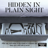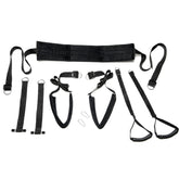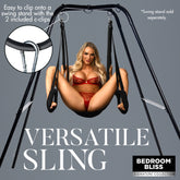 Elevate your pleasure with this Lover's Door Swing! This sex sling hangs over a closed door from nylon straps and stays in place via the ABS plastic cylinders that protect the door from scuffing and scratches. The strong, durable nylon is padded with polyester cushions that support the thighs and bottom. Two handles hang from the door frame as well so you can pull up to adjust your position and feel more secure. The swing can support up to 300 lbs! Seat pads, leg pads and hand rips are all adjustable. The straps are easy to hook over a door or clip to sex swing stand. Spot clean as needed or machine wash the straps and pads. All materials are phthalate-free and nickel-free. With the swing in place over the door, your partner helps lift you into place. You tug at the straps to adjust them for the perfect angle, your hips lifted and legs spread wide. They start by making their way from your lips to between your thighs and kneel on a pillow as they lick you. Once you're dripping wet, they come up for air and kiss you deeply again. They pull your hips towards them and carefully slide themselves inside. You gasp in pleasure! The angle is perfect and hits that hard-to-reach spot! They rock their hips, thrusting back and forth, until you're screaming so loud the neighbors hear! Finally your whole body convulses and a waterfall gushes out of you. Your partner laughs, grabs a towel, and comes back for more! Measurements : Door mount straps: 13 inches length Leg pads: 3 inches x 17.5 inches Seat pad: 5 inches x 26.5 inches Weight Capacity : Holds up to 300lbs Materials : Polyester, nylon, ABS plastic, metal, silicone Color : Black Note : Test the sturdiness of the door and doorframe before engaging in activity.