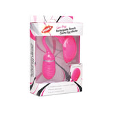 Take your love on the go with the sweet Luv-Pop Rechargeable Remote Egg Vibe! This powerful bullet has 10 fun settings, with a USB rechargeable design that lets you use it over and over again, without the hassle or cost of batteries. The smooth silicone is non-porous, phthalate-free, and silky soft to the touch. Pull the sturdy silicone retrieval cord to remove- you will feel every subtle pleasure ripple as it moves in and out of you. Use the wireless remote to control your pleasure, or use it with a partner for discreet fun- it works up to 100 feet away! Take this great little egg home today and get ready for a pop of pleasure!