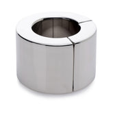 Whether you enjoy the weight and pull of a heavy ball stretcher during masturbation, or you are tormenting your sub with some CBT action, this heavy magnetic device is a unique and innovative new way to play Pull the scrotum down away from the body and through the opening in the hefty stainless steel ring. Make sure all skin is against the back of the stretcher before replacing the magnetic closure. The stainless steel will clink loudly together, leaving the balls trapped in the heavy instrument. When you let go, it will yank down, pulling on the scrotum for an incredible sensation. Measurements: 1.58 inches long (40mm), 2.25 inches in width. Internal diameter measures 1.38 inches. Material: Stainless Steel. Color: Grey.