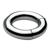 Weighing in at a whopping 7.5 oz, this ball-stretcher will get the job done simply with the sheer force of gravity Made of highly durable stainless steel, this heavy ring will pull down on your scrotum to create a unique sensation that will amplify a sexual experience on your own or with a partner. The powerful magnetism within the ring allows it to easily open and securely close. This attractive and distinct accessory is compatible with all types of lubricant and cleans with mild soap and warm water. Measurements: Inner diameter is 1.35 inches. Material: Stainless steel. Color: Grey.