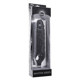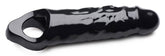 This lifelike penis extender aims to satisfy both you and your partner by providing increased size as well as a prolonged erection, great for lengthy sessions. Simply insert the penis into the comfortable, hollow shaft, and then pull the testicles through the base ring. The inside of the hollow shaft has exciting sensation nodes, for stimulation for the wearer. Entice them with a larger, longer-lasing erection, for unending pleasure and over the edge climaxes. Measurements: 6.5 inches insertable length, 2 inches in diameter at widest point, inner opening measures 1.5 inches in diameter. Material: TPR. Color: Black