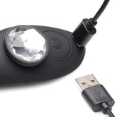 Get a toy with beauty and function! This Naughty Knickers Bling Edition panty vibe is made with smooth, silky, and plush premium silicone so it is gentle and sensual against your soft skin while also having the benefit of being phthalate-free and body safe! The glittering jewel on the front of the toy is a magnet that you can use to keep the vibe in place while you wear it! The curved end bends so it can adjust to your shape as you move, sit, writhe and grind. The design is ergonomic and fits elegantly between your lips and against the clitoris. Use the remote control from a distance of up to 32 feet (so you and your partner can play) to switch between 3 speeds and 7 patterns of rumbly, buzzing vibration. After the fun is done, wash with warm water and soap, then rinse and spray with a toy cleaner for good measure! Recharge the toy to full buzzing power using the USB cable provided.