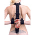 This versatile and fun device is a great way to restrain your lover in style The soft Neoprene cuffs and collar close easily and quickly with a Velcro strap, making it one size fits most. The cuffs attach with a snap hook, and can be attached to any of the 8 D-rings that line the strap, with another at the very bottom. Wear it high or wear it low - it is up to you Either way makes for some great bondage play. Measurements: Collar: Fits necks up to 22 inches, 2 inches in width; Cuffs: Fits wrists up to 14.5 inches, 2 inches in width; Strap: 19 inches in length, 2 inches in width. Material: Neoprene, nylon, Velcro. Color: Black
