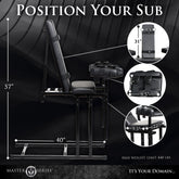 Ask your partner to climb up into the chair and try it out. Adjust the leg height and the chair backboard angle for the, and adjust any other positions and heights for yourself, as well. Once you've got the settings out of the way, bind them with the straps and buckle them in. Tease and torment them with pleasure and pain while they writhe in agony and ecstasy! Use floggers, nipple clamps, ticklers, vibrators and more while they're bound and secured, ready to receive. If you're solo and want to enjoy it yourself, strap yourself in and enjoy the support that the leg boards offer so you can really enjoy being spread wide as you play with yourself in your sexy bondage chair! Take it up a notch and combine this with the Dicktator Extreme Sex Machine and get pounded while you*re on your throne!