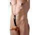 Apprehend them with this golden nipple clamp and cock ring set. Two alligator style nipple clamps with an attached chain form a devious Y shape that attaches to a 1.75 inch metal cock ring supported by a PU leather belt strip. The nipple clamps feature an adjustable pressure screw, while the cock ring assists in maintaining his erections. With each movement, the chains will pull on the clamps, sending stimulating pressure to his sensitive nipples. The PU leather belt is adjustable so you can restrict or increase the distance from the clamps to the cock ring.