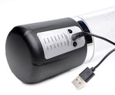 This automatic penis pump is easy-to-use, but packs a ton of power Treat yourself or your partner to a penis that is swollen with sensitivity with this rechargeable, all-in-one pump Slide into the silicone sleeve using a little water-based lube for sleekness. The tight opening will create a seal around your penis so that pressure can build within. The cylinder is textured for a firm grasp, clear so that you can watch yourself grow, and marked with measurements so that you can track your progress Explore 5 levels of suction, finding your perfect amount of pressure with the plus and minus buttons. The easy-to-read display will tell you how many pascals of internal pressure you are vacuuming your penis with. When you have had enough, a pressure release valve button will release the pressure so that you can play with your erection Measurements: 11.5 inches in total length, 8 inches insertable cylinder depth, 2.35 inches in diameter. Silicone opening is .75 inches in diameter, unstretched. Hose is 8.75 inches in length. Material: ABS, silicone Color: Clear Note: Charges via USB