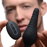 This textured, tapered plug will vibrate within your ass with just the push of a button Let the pleasure take control with this easy-to-use, remote-controlled, rechargeable anal vibrator Whether you appreciate the convenience during solo play, or the power during couples play, the wireless remote is an exciting feature for use at home or out on the town Simple buttons allow you to move back and forth between 3 speeds and 7 patterns of vibration with a remote range of 15 feet. The narrow tip allows for a comfortable insertion while the spiraling ridge winds up the plug for an internal massage. Made of premium silicone, this pleasure tool is phthalate-free for body safety, and non-porous for thorough sanitization. Clean this waterproof device after use with warm water and mild soap or toy cleaner. Measurements: 5.75 inches in total length, 4.75 inches insertable, 1.55 inches at widest diameter. Remote is 2.2 inches in length, 1.4 inches in width. Material: Silicone, ABS plastic Color: Black Note: Instructions included. Charges via USB. Remote requires 1-CR2032 cell battery, included.