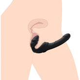 A slender shaft, subtle textures, and 9 incredible modes of vibration set this beautiful strapless strap-on apart This rechargeable pleasure tool features dual motors to provide you with 3 speeds and 6 patterns of powerful internal thrumming. The single control button is easy-to-use and accessible during penetration. Both ends of this artfully designed double dildo are shaped for the ultimate in ecstasy: the bulb is adorned with gentle waves while you grind your clit against bold grooves of the front pad. Meanwhile your partner will be treated to a narrow, comfortable shaft with a slight ridge. It is even waterproof so that you can take your play into the shower, bath, pool, and more Explore greater intimacy with a vibrating double-ended strapon dildo. Made of silky silicone, the Slim Rider is non-porous and phthalate-free. Clean with mild soap and warm water and avoid use with silicone lubricants. Measurements: Total length is 8.5 inches in length. Shaft is 5 inches insertable length, 1.3 inches at widest diameter. Bulb is 3 inches insertable length, 1.5 inches at widest diameter. Material: Silicone. Color: Black. Note: Rechargeable via USB cord.