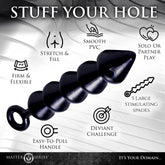 This extra large set of anal beads are spade shaped for added sensation. Flexible yet firm, the slick material inserts easily. The O-ring handle makes for easy and quick removal, as each flared bead passes out of you, you will feel an incredible jolt of sensation. Tapered for easy insertion, these super sized beads will maximize your anal experience. Measurements: 12.5 inches in total length, 9 insertable, 1.75 inches in diameter Material: TPR Color: Black