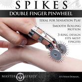 Now you can always have sensation play at the tip of your finger! This unique take on a Wartenberg Wheel allows you to wear two pinwheels on a ring-like device. The smooth rolling motion upon your lovers skin will produce a prickly, painful pleasure that will give them goosebumps. Blindfold them to heighten the stimulation as your surprise them with every touch. This durable instrument is secure on most fingers due to its three-ring design.
