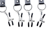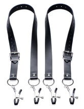 Adjustable pressure clamps and straps, fully adjustable Spread em wide! This Extra Large Labia Spreader is designed to open your lovers vagina and put their sensitive parts on display for your enjoyment. The adjustment screws found on each clamp let you control the clamping pressure with ease, while the straps themselves can be customized to fit most leg and waist sizes. Perfect for humiliation play, bondage, and bedroom BDSM. Restrain your lover and attach this spreader strap to their sensitive lips to expose their hole for further teasing and pleasing! The firm pinch from this spreader increases sensitivity, especially for those with a submission kink. Spread your lover nice and wide in comfort! The straps are velvet lined and easy on the skin, while the rubber tips on each clamp prevents discomfort as they press on the sensitive areas of your partner. Measurements: Each strap adjusts from 19 inches to 32.5 inches between the tip of each clamp. Clamps open up to 0.5 inches. Materials: PU Leather, Nickel-Free Metal Color: Black