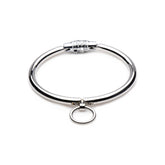 Adorn your slave in a symbol of their complete surrender to submission. This beautiful and heavy-duty collar is made of stainless steel, with a unique detail that sets it apart from other BDSM collars. A combination lock ensures that your plaything has no hope for escape until you offer release, just the way they like it! The O-ring on the front allows you to attach other bondage accessories, such as a leash or nipple clamps. The smooth, rounded edges make this a comfortable collar for private play or 24-7 wear.