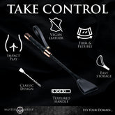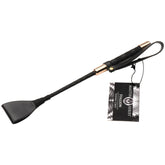 Add a sturdy crop to your collection and always have a wicked tool on hand for spankings and kinky play! This riding crop delivers a sharp and certain bite for when you want to kiss your partner with a touch of delightful pain. Made out of vegan friendly leather, this crop has a textured grip that helps you keep your grip as you play. The firm rod at the center is made of a glass fiber that is firm with enough flex to handle impact. The triangular end is perfect or precise and specific impact play. To clean, spray with a toy cleaner or a mixture of alcohol and water. Bend them over after some teasing and negotiation. Warm up their behind with a few spankings and floggings. When they're ready, start to tap them lightly with the triangle end of the crop. Each impact is precise and stings ever so slightly. Begin to go harder and harder, their skin flushing red, until they've had enough. Rub the spots where you hit them, then continue again when they're ready for more! Measurements:Overall length: 12 inches. Crop width: 1.5 inches. Materials: Aluminum, PU leather, glass fiber Color: Black