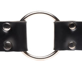 Play with your creativity and get the position you desire! With this strap harness, nearly anything is possible! Slip in a compatible strapon dildo through the metal O-ring and adjust the straps as needed. This versatile strap can be placed on objects such as chairs or people with wide hips! To keep clean, spray with a toy cleaner before and after use and wipe dry with a soft cloth. Hang up to keep the strap from becoming kinked. Measurements : Overall length: 48.5 inches, Strap width: 1.5 inches, O-ring inner diameter: 2 inches, Adjusts from 34 inch to 45 inch circumference Materials : PU leather, metal Color : Black Note : Dildo not included.