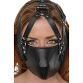 Cover that filthy mouth with the Strict Leather Face Harness This fully adjustable, high quality muzzle keeps your sub from spitting, biting, or any other unacceptable oral behavior. Plus their cries for mercy will sound even hotter muffled by a layer of leather Three buckled straps adjust for a custom fit, and the neck and crown straps are lockable for even more security. This durable product is made to play hard out of heavy-duty leather and metal, and the muzzle portion features a cut out nose flap for better fit and easy breathing. Measurements: Neck strap adjusts from 17.5 to 21.5 inches around, Crown strap (running from nape of neck to top of head) adjusts from 8.5 to 12 inches long from the crown of the head to the neck strap, Material: Leather, Metal, Color: Black