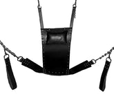The Strict Leather Premium Black Leather Sex Sling is constructed of thick latigo leather with layered support straps. It comes with a set of leather stirrups, plush leather pillow and D-rings for all of your attachment needs. The sling is hung from above using four ropes or chains of your choosing, not included.