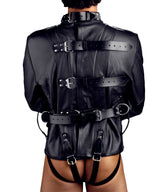 Strap down your partner and be in total control The straight jacket keeps your partner restrained with belt style straps which are strategically located ( one at the neck, three that run across the back and two around the thighs.) Jacket also has three D-rings, one at the neck and one on each sleeve, for additional bondage positions. On top of all the great security, we have made the elbows more durable by applying extra leather to help prevent wear and tear. Sizing: , Small:Chest 36 inches to 39 inches; Waist 29 inches to 32 inches. , Medium: Chest 39 inches to 42 inches; Waist 32 inches to 35 inches. , Large: Chest 43 inches to 46 inches; Waist 35 inches to 38 inches. , Extra Large: Chest 47 inches to 50 inches; Waist 38 inches to 42 inches.