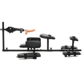 Note: Use dildo only with water-based lubricants. Chin rest, arm pads, torso pad, and sex machine bracket are all adjustable lengthwise along the main rod. Leg pads are attached to the main arm and are not adjustable.