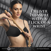 Take your impact play up a notch with this 6 tailed rope whip! Made of nylon, it is highly absorbent, durable and built to last! The knots on each end of the falls add an extra bite to each throw. Each fall is twisted so it stays tightly together and they are braided together along the handle. The firm handle keeps its shape with the help of a metal alloy core. Enjoy using this as a tool to give your lover a wicked little tap on the bottom when the flogging is paused. Easy to hold and to aim, this whip is great for beginners and advanced users alike! Due to its absorbent nature, it's important to properly clean your rope after use, especially when it has come in contact with bodily fluids. Start by soaking the rope in a tub of water with mild detergent. Rinse using a rope washer or place directly into the washing machine. Washing rope in a top-loading washing machine is the easiest method. After you've gotten the consent of your submissive or partner, you place them against the bed, hands and head down and braced against the bed. Their backside is bare and their back is exposed to you. As you caress your body, you feel the heat rising from their skin. You begin to land a few strikes, caressing them in between and reminding them to breathe. Before long, you see the red marks appear and you touch their skin again. Their skin is hot where the marks are and there's a wicked grin on their face. As you lean down towards them they whisper, "Thank you. More, please!" Measurements: Overall length: 25 inches. Tassels length: 17 inches. Materials: Nylon, metal alloy Color: Ivory Note: Keep away from extreme heat or fire; synthetic rope will melt or fuse together. Key Features: Twisted Rope: These 6 twisted tassels of this Swashbuckler flogger are perfect for beginners or advanced users alike! Dispersed Impact: The knotted ends of each fall disperse in 6 different locations for impact play. Rigid Handle: The rigid handle has a metal alloy core that keeps it firm and easy to control when gripped in your hand. Detachable Ring: Use the detachable ring to hang up your flogger when not in use to preserve its form and quality.