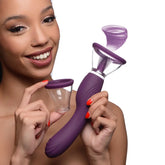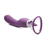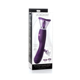 A powerful multifaceted vibrator designed to lick, suck, and vibrate to supplement your sexual creativity! Featuring silicone ringed cups to rhythmically suck on your nipple or clitoris, enhancing the sensations created from the powerful licking digit. Two cups are included - one shaped for the clitoris, and the other for nipples. The licking action tip has 8 licking modes available. The curved, ergonomic shaft features powerful dual motors built to buzz your insides with 3 speeds and 5 patterns of intense vibrations. The Lickgasm is constructed with premium, phthalate-free, latex-free, silicone for a worry free play session. Compatible with water based lubes only, and reachargeable via included USB charging cable. Measurements : Overall length 9.6 inches, insertable length 5 inches, widest insertable diameter 1.6 inches, tongue length 1.5 inches Materials : Silicone, ABS Plastic, polycarbonate Color : Purple