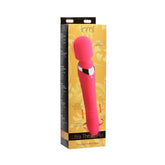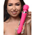 This luxurious vibrator was expertly crafted for internal and external delight. The double-ended design provides a classic massage wand to stimulate the sensitive outside areas with 3 speeds of thrumming and 4 functions of throbbing. Flip it around and the handle delves deep into an orifice with a total of three exciting functions: vibration, rotation, and thrusting The grooves and ridges provide an internal massage while the independent controls allow for internal vibration on its own, swirling strokes on their own, or both of them together. Made of premium silicone, this vibe is non-porous and phthalate-free. Avoid use with silicone lube and clean with mild soap and warm water. Measurements: 10.75 inches in total length, 6 inches insertable. Wand head is 1.75 inches in diameter, shaft is 1.5 inches at widest diameter. Material: Silicone, ABS plastic. Color: Pink. Note: Charges via USB.